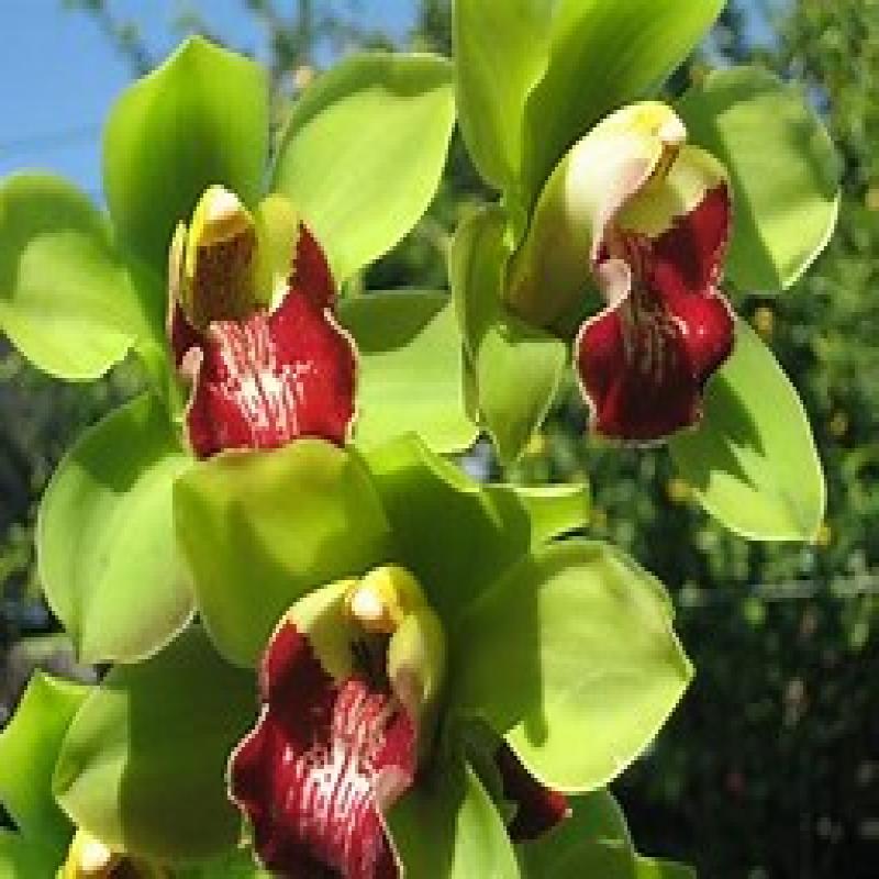 A very nice eye-catching green cymbidium on upright spikes. Near blooming size division in a gallon pot.