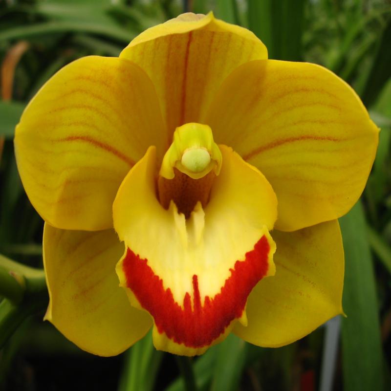 Large full shaped yellow flowers with a solid red lip. Famous breeder for good formed flowers with bold lips. Mother plant. Backbulb propogation in a 3 inch pot, ready to be moved up to a gallon pot.