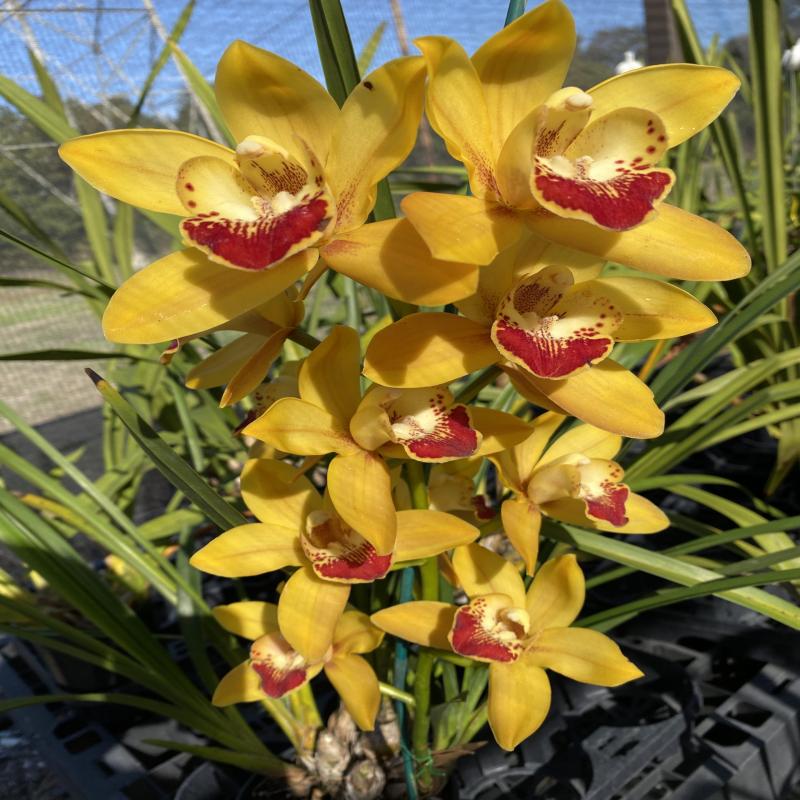 This is the second release of a division of this plant. This is a very nice tetraploid grex of Enzan Shining. It has a very strong fragrance, with bright yellow flowers on tall upright spikes with excellent flower count. This plant is a very good grower and bloomer. Near blooming size division in a gallon pot.