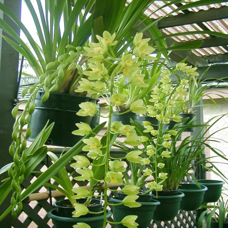 This is the very famous diploid Fifi ‘Harry’ (2N) with novelty size green flowers on long pendulous spikes. Easy to grow and bloom. Near blooming size division in a gallon pot.