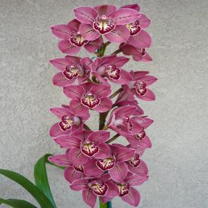 This is a very robust spotted standard cymbidium on upright to arching spikes. Tremendous vigor and excellent flower count. Proving to be a good parent. Near blooming size division in a gallon pot. This is the second release of this impressive plant.
