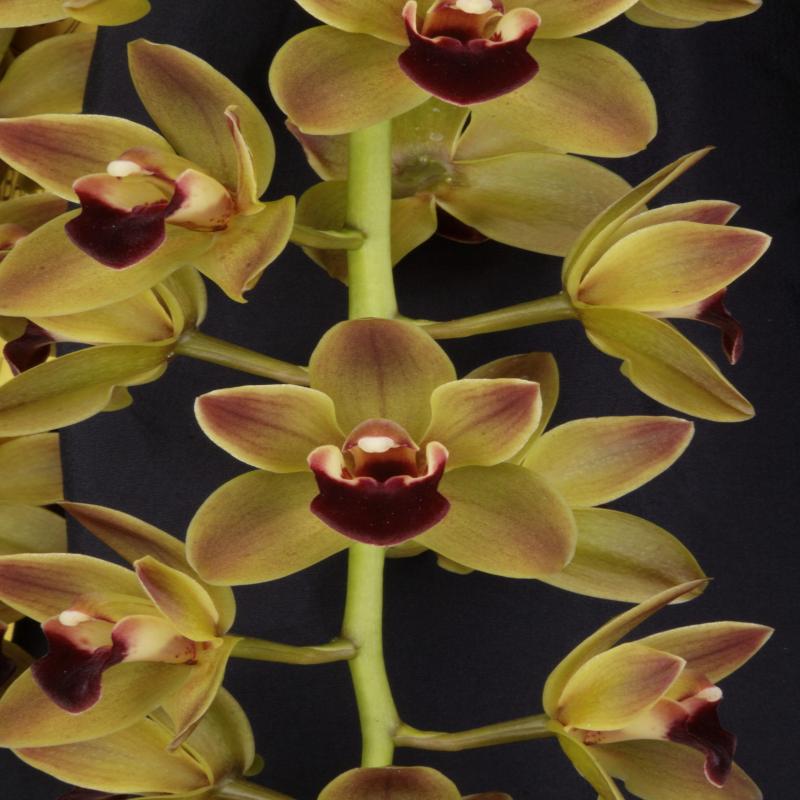 This is the first release of a division of this extraordinary plant. Highly awarded at the Santa Barbara International orchid show. It is a novelty cymbidium with lovely pendulous inflorescences with nice red highlighting on the petals. Very good form, substance and very floriferous. Near blooming size division in a gallon pot.