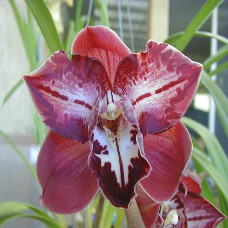 A very attractive standard petal peloric/splash flower in red/purple shades depending on light. Upright to arching inflorescence. Near blooming size division in a gallon pot. Division of the mother plant.