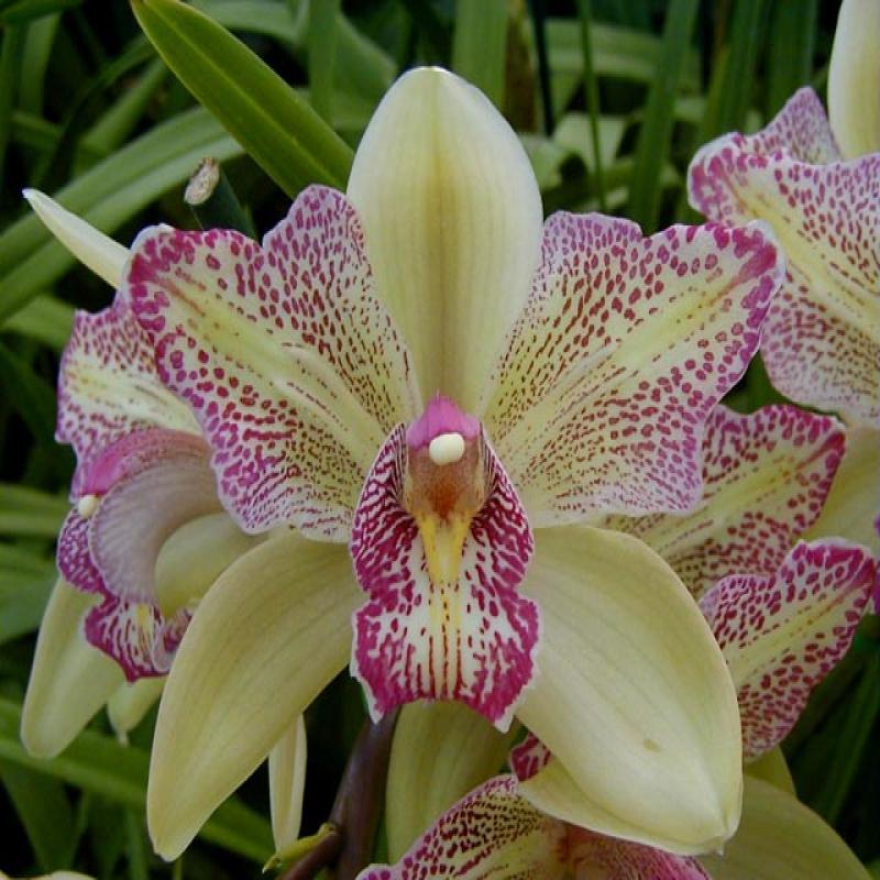 This is a blooming size division of the very famous and beautiful petal peloric Isle ‘Flamingo’. Large green flowers with pink/purple spots splashed on the petals. Easy to grow and bloom. Very Showy! Well established near blooming size division in a gallon pot.