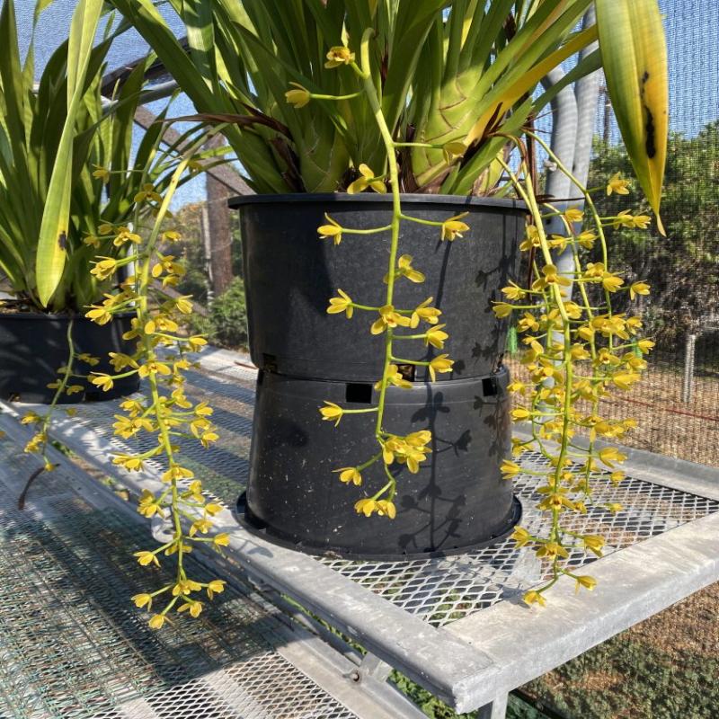 A very good growing green variety of cymbidium madidum. Fragrant species with a pendulous inflorescence. Near blooming size division in a gallon pot.