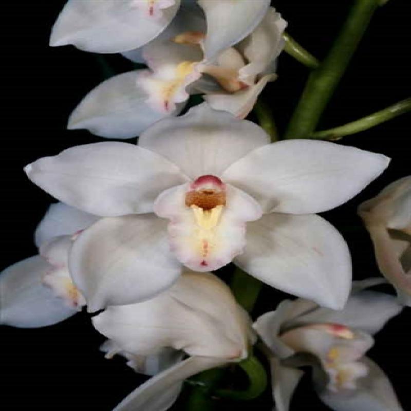 A very nice white standard with large flowers on upright spikes and good flower count. This plant was Reserve Champion at the 2009 Santa Barbara International Orchid Show and received a Silver Medal from the Cymbidium Society of America (CSA). This is a near blooming size division of the original Awarded Plant.