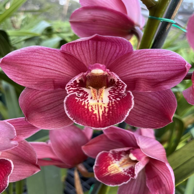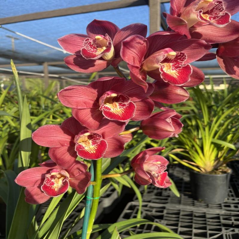 A very nicely formed pastel pink-fuchsia cymbidium on upright spikes. Near blooming size division in a gallon pot.
