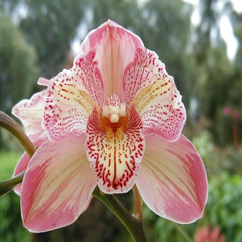 This is perhaps the most unique cymbidium to date. The petals are peloric and the sepals are splashed. This is the only cymbidium that I know of to date with this characteristic. It is an amazing and beautiful, as well as easy to grow and bloom. Meristems were made of this plant, but they generally mutated, and none grow or bloom like the original version. A truly remarkable cymbidium that must be added to any elite collection. Near blooming size division in a gallon pot.