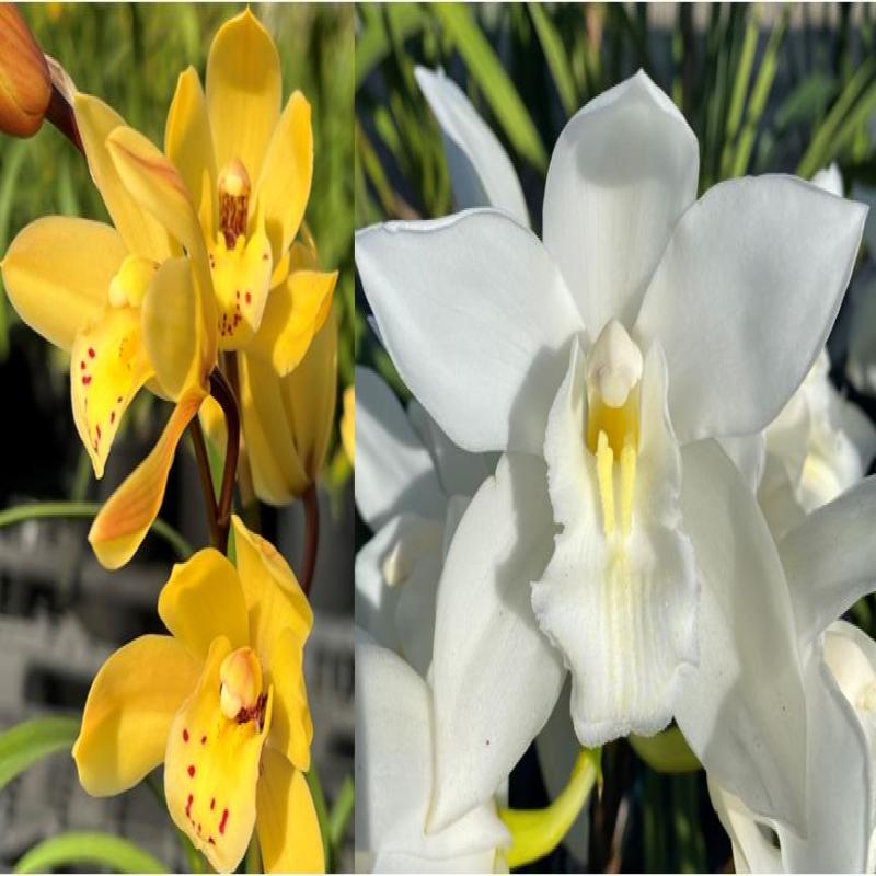 This is a hybrid between an alba carrying fragrant goeringii hybrid and a very nice snow white alba. We expect very compact plants with cream-colored flowers and a good percentage of albas ranging from yellow to white. Many should also be fragrant. This is a very exciting hybrid for people looking for compact and fragrant cymbidiums. These are single growth seedlings in 3.5 inch pots.