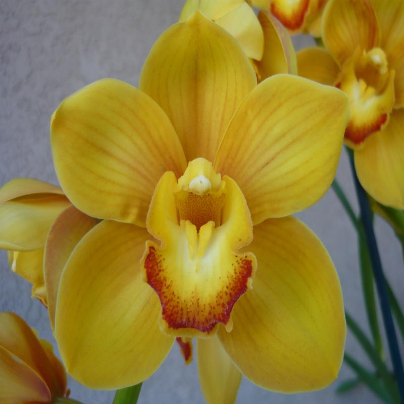 Bright yellow flowers on an arching spike. Good substance, form, and flower count. Easy grower and bloomer. Mother Plant. Blooming size division in a gallon pot.