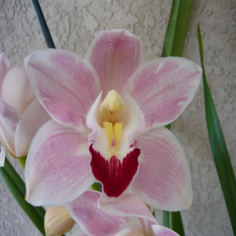 A beautiful arching white cymbidium with pink highlights. A very famous breeder and good show plant. This is a near blooming size division of the original mother plant.