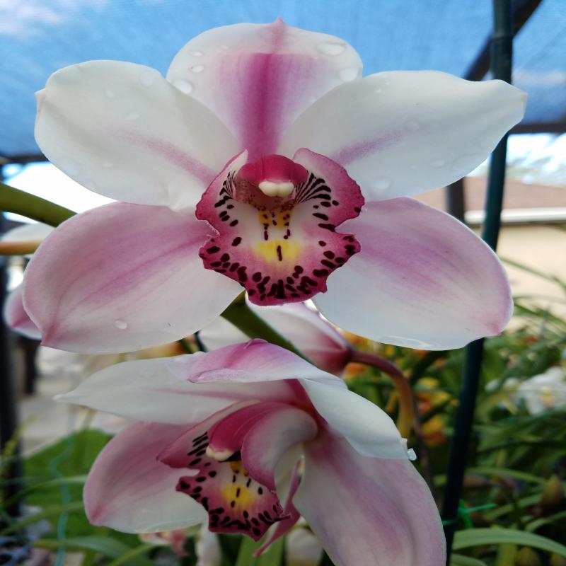 This is hybrid between two beautiful large white standards. Joan’s Charisma is the whitest cymbidium I own, which combined with the beautiful Venetian Interlude should produce some very fine whites. Spikes should be upright with good flower count. Near blooming size seedlings in gallon pots.