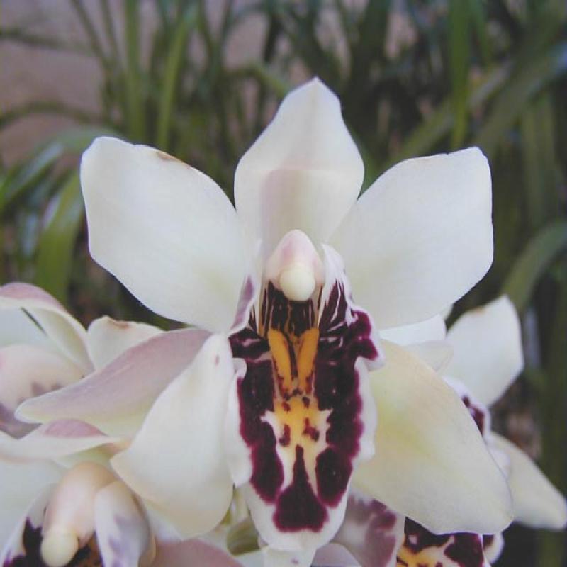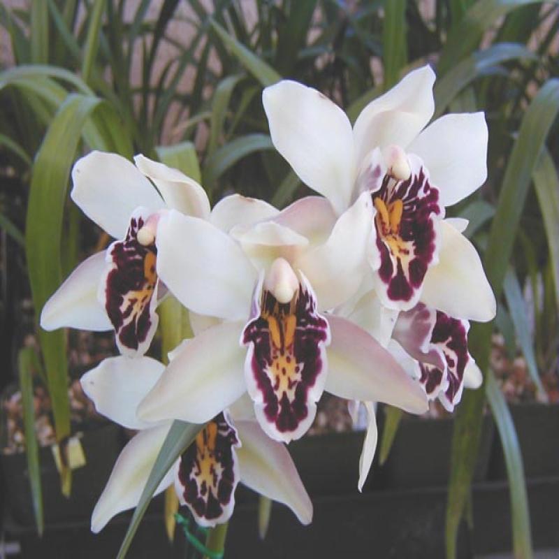A very fragrant cream colored flower with bold purple spots on the lips. Famous breeder. Near blooming size division in a gallon pot.