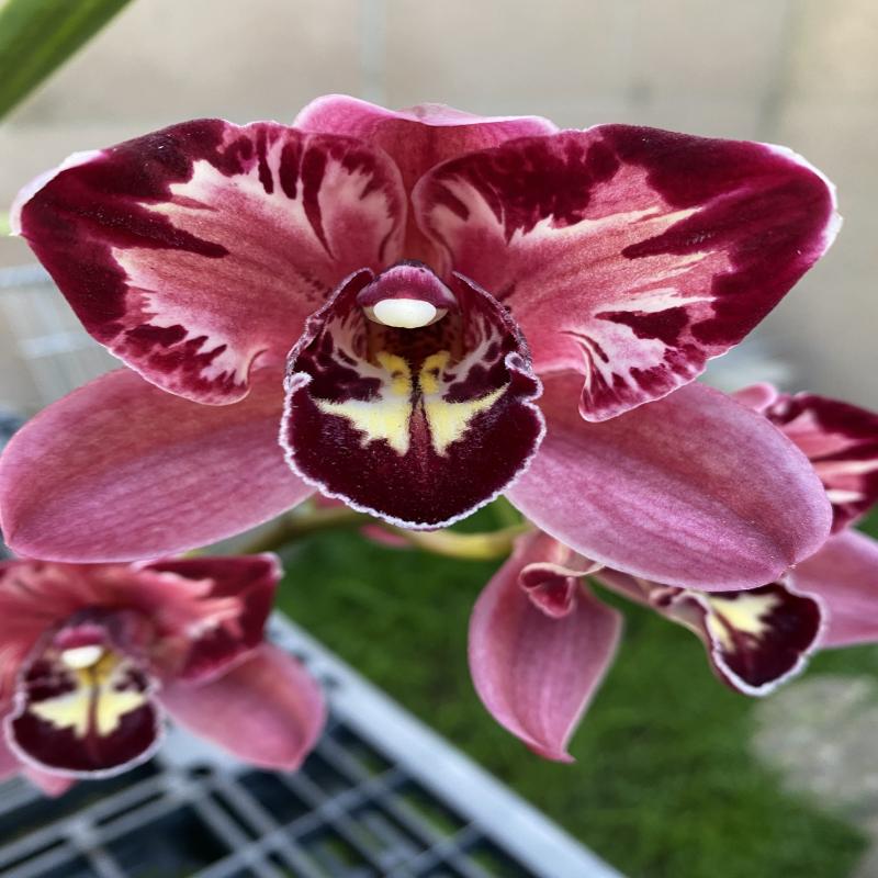This is a mutation from the meristem of Pepper’s Fire ‘Fiesta’. A larger plant with very nice peloric markings on upright spikes. Near blooming size division in a gallon pot.