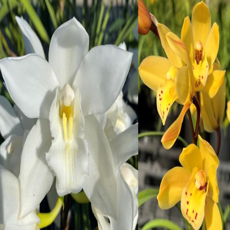 This is a hybrid between an alba carrying fragrant goeringii hybrid and a very nice snow white alba. We expect very compact plants with cream-colored flowers and a good percentage of albas ranging from yellow to white. Many should also be fragrant. This is a very exciting hybrid for people looking for compact and fragrant cymbidiums. These are single growth seedlings in 3.5 inch pots.