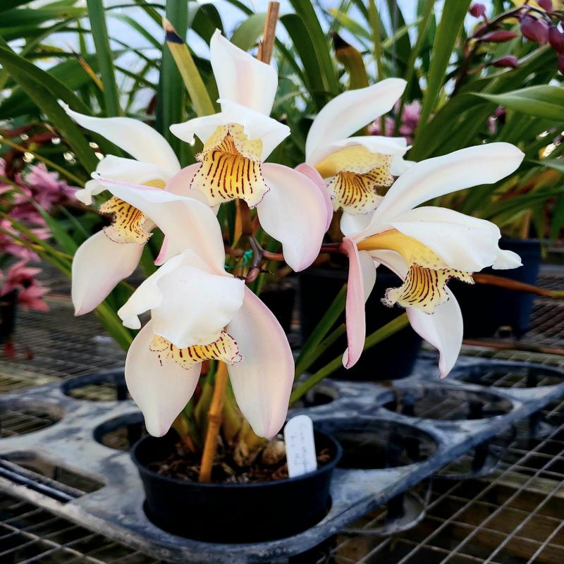 These are seedlings of a selfing of a beautiful species from Vietnam. The plant used was a tetraploid (4N). They are growing well in 3.5 inch pots with 2-3 growths, ready to move up into larger pots later this year.