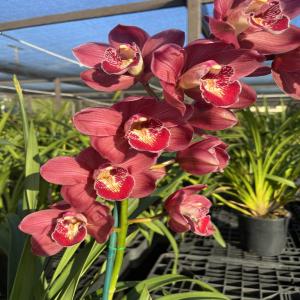 A very nicely formed pastel pink-fuchsia cymbidium on upright spikes. Near blooming size division in a gallon pot.